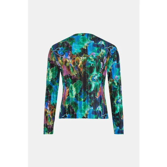 Style: Funnel Neck TopDesign: All Over PrintFabric: PlisseLength: RegularNeckline: Funnel NeckSleeve Length: Long Sleeve