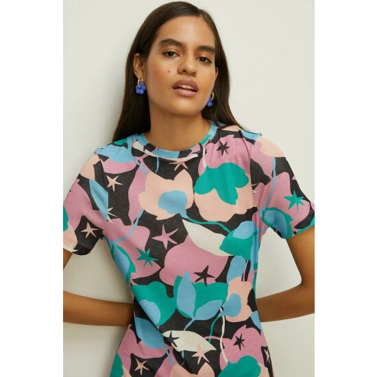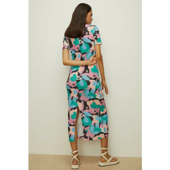 Style: DressDesign: All Over PrintFabric: MeshLength: MidiNeckline: CrewSleeve Length: Short Sleeve