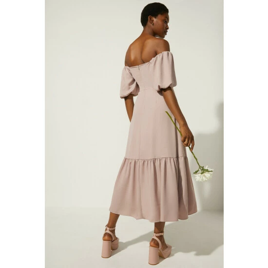 Style: Midi DressFabric: SatinLength: MidiNeckline: BardotSleeve Length: SleevelessDiscover our full range of women’s bridesmaid dresses Check out our wedding guest dresses range.