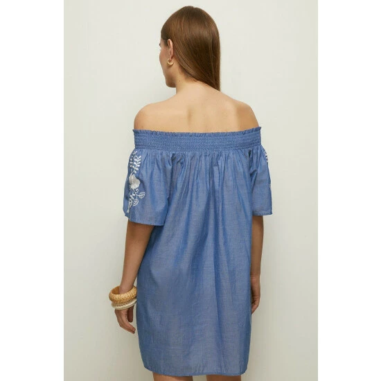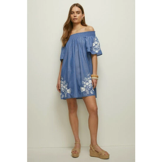 Style: Mini DressFabric: WovenLength: MiniNeckline: Off the ShoulderSleeve Length: Cap Sleeve