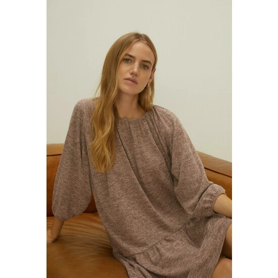Beautifully crafted in a cosy jersey, this mini fit dress is designed in a flattering smock style. Designed with a round neckline, raglan sleeves and a drop hemline, this dress is perfect for effortless everyday style. Model wears a size 10 and is 5’11.