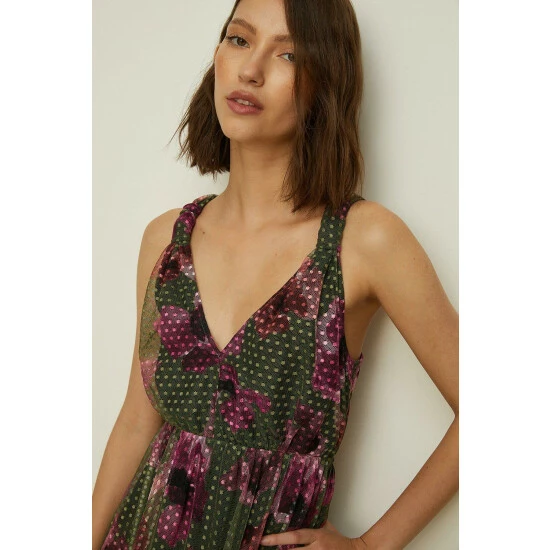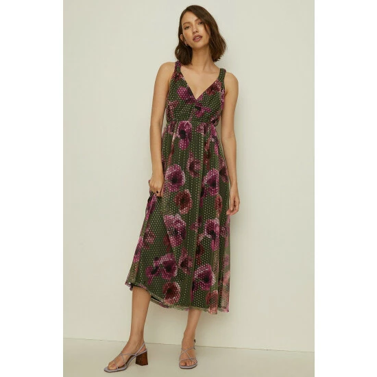 Style: Midi DressDesign: FloralFabric: MeshLength: MidiNeckline: V NeckSleeve Length: Sleeveless