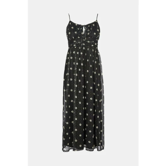 100% Polyester Lining: 100% Polyester, Machine Wash. Dress Length 135cm. Model wears size S and is 5ft 9in.
