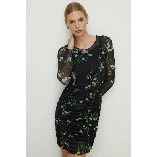 Beautifully crafted in a printed mesh, this dress is designed in a figure-hugging style with a round neckline and long sleeves. Pair with colour-pop accessories to take the dress into after-dark territory, or dress down with an oversized denim jacket and trainers for everyday wear. Model wears a size 10.