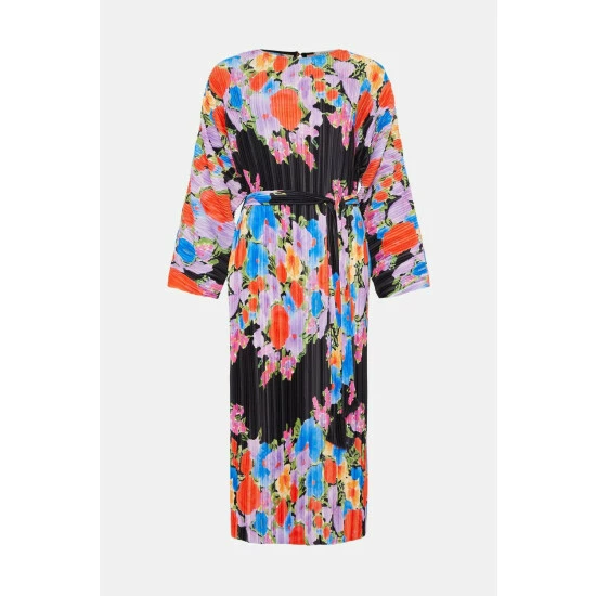 Style: Midi DressDesign: All Over PrintFabric: PlisseLength: MidiNeckline: Round NeckSleeve Length: Long Sleeve