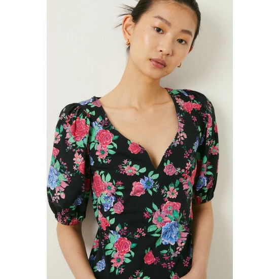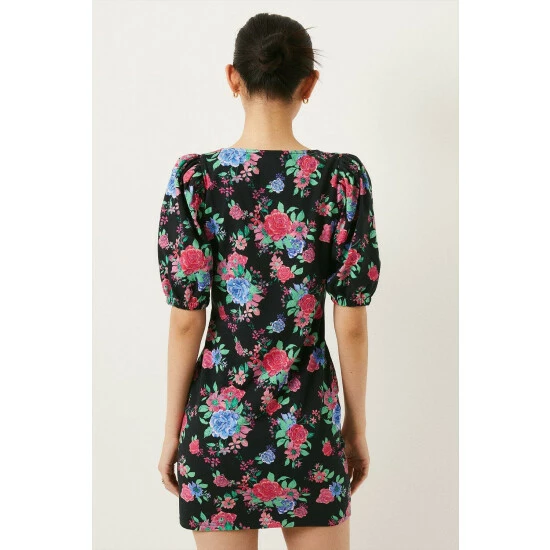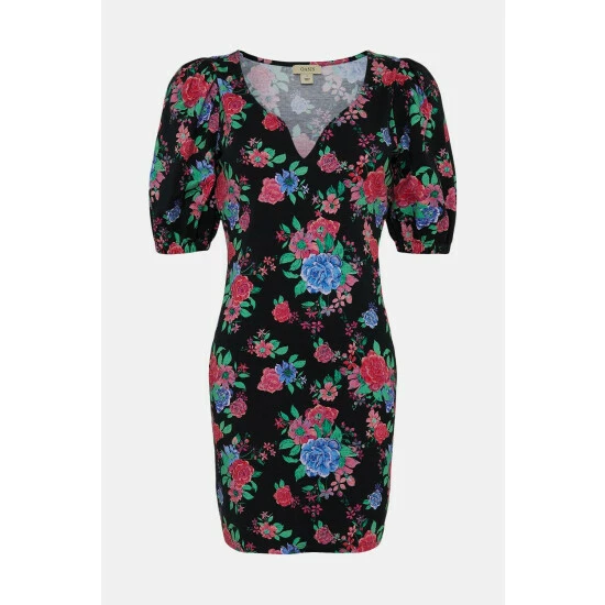 Style: Mini DressDesign: FloralFabric: JerseyLength: MiniNeckline: NotchSleeve Length: Short Sleeve