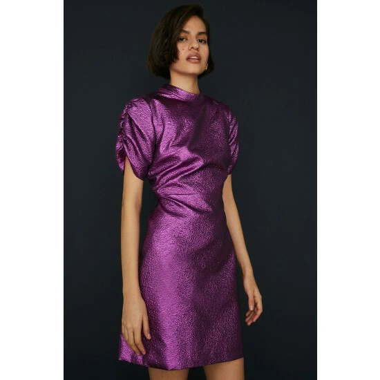 Fabric Comp: Main: 77% Polyester 23% Metallised fibres. Lining: 100% Polyester. Machine Wash 40. Length 92cm. Model Wears Size 10.