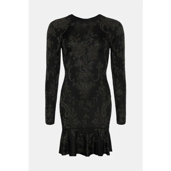 Style: Knitted DressDesign: JacquardFabric: KnittedLength: MiniNeckline: CrewSleeve Length: Long SleeveDiscover our full range of women’s knitwear