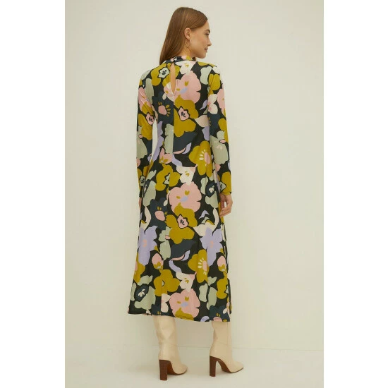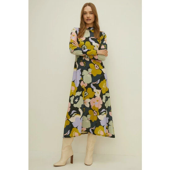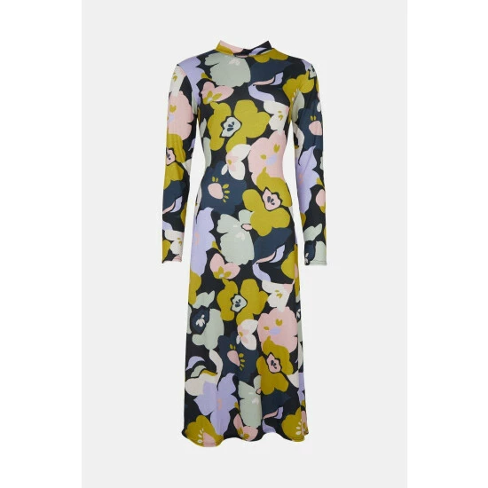 Your new go-to dress has arrived. Decorated with a bold floral print, it’s designed in a slightly floaty style with long sleeves, a midi length and funnel neckline. Perfect for making an entrance at every invite, this dress pairs perfectly with cream accessories for a chic look.This garment is part of our Conscious Clothing rangeIt is made with recycled polyester.Find out more about our material goalsConscious Clothing Guidelines