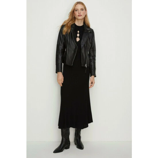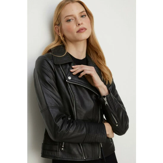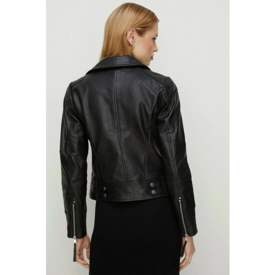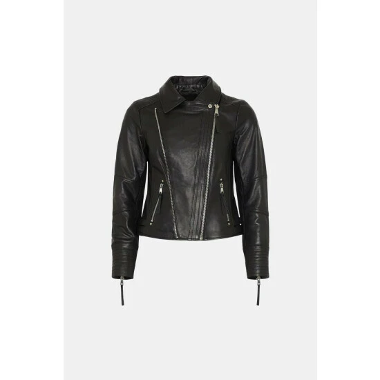 Fabric Comp: Shell: Leather. Lining: 100% Polyester. Length 58cm. Model Wears Size 10.