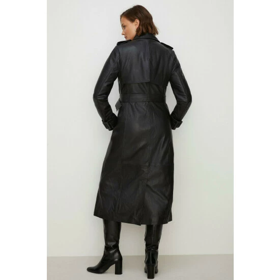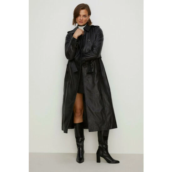 Fabric Comp: Outer: 100% Leather. Lining: 100% Polyester. Length 120cm. Model Wears Size 10.