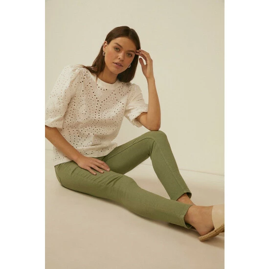98% Cotton, 2% Elastane, Machine Washable. Model Wears Size 8. Jean Length is 75cm.