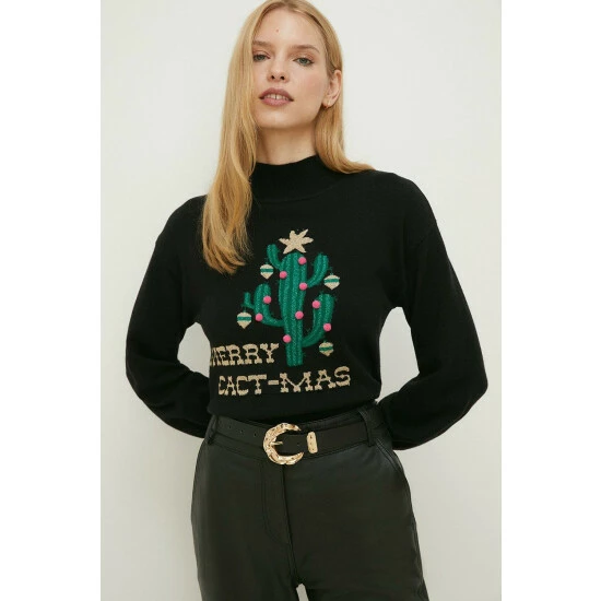 Style: Christmas JumperDesign: EmbroideredFabric: KnittedLength: RegularNeckline: High NeckSleeve Length: Long Sleeve
