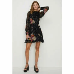 81% Viscose, 19% Metallised Fiber.. Machine Wash. Dress length 92cm. Model Wears Size 8.
