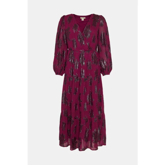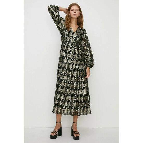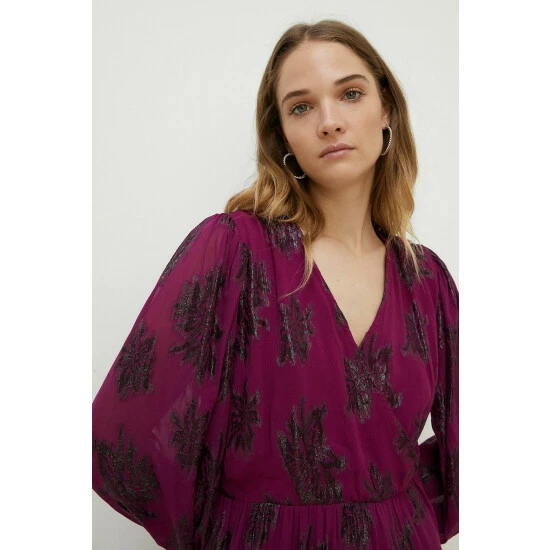 81% Viscose, 19% Metallised Fibre. Machine Wash. Dress length 62cm. Model Wears Size 10.