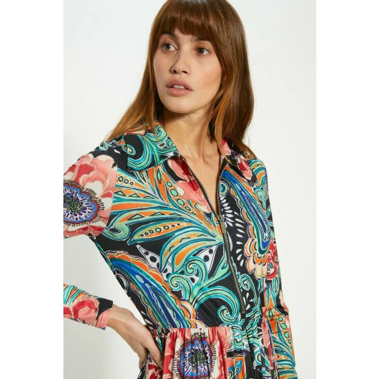 95% polyester, 5% elastane. Machine Wash. Dress length 125cm. Model Wears Size S