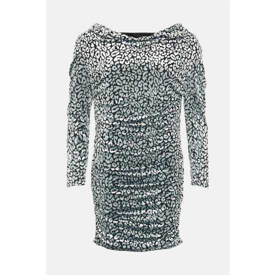 Style: Mini DressDesign: AnimalFabric: VelvetNeckline: CowlSleeve Length: Long Sleeve