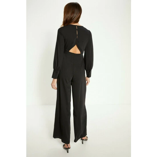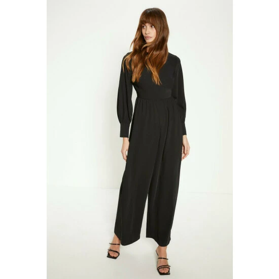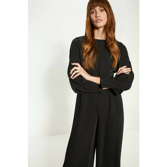 Style: Wide Leg JumpsuitDesign: PlainFabric: CrepeLength: RegularNeckline: CrewSleeve Length: Long Sleeve