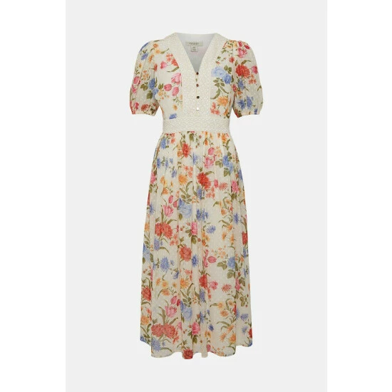 Style: Midi DressDesign: FloralFabric: WovenLength: MidiNeckline: V NeckSleeve Length: Short SleeveDiscover our full range of women’s bridesmaid dresses Check out our wedding guest dresses range.