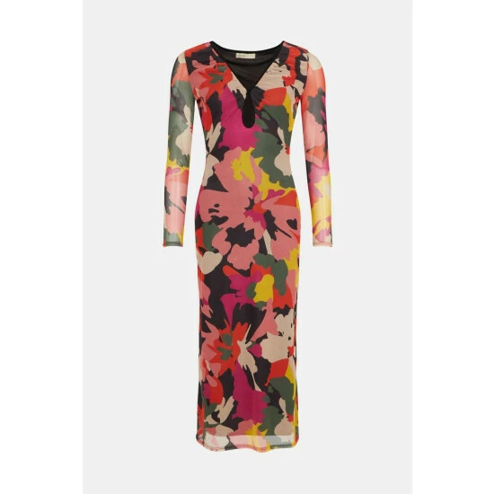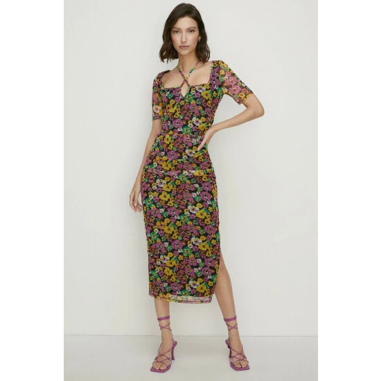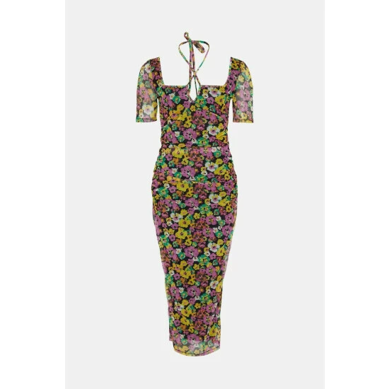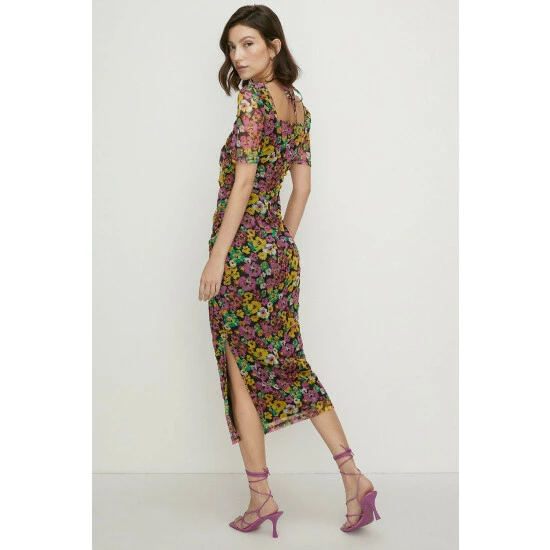 Style: Midi DressDesign: All Over PrintFabric: MeshLength: MidiNeckline: SquareSleeve Length: Short Sleeve
