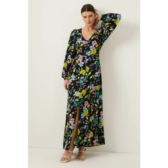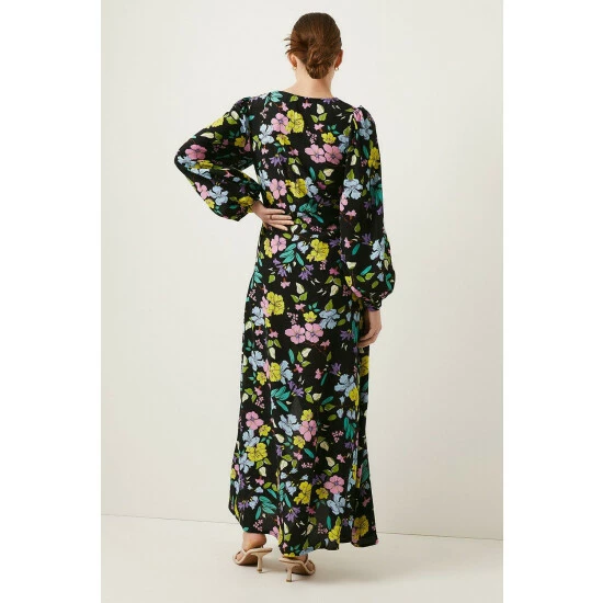 Oasis Petite Neon Floral Printed V Neck Midi Dress For Female
