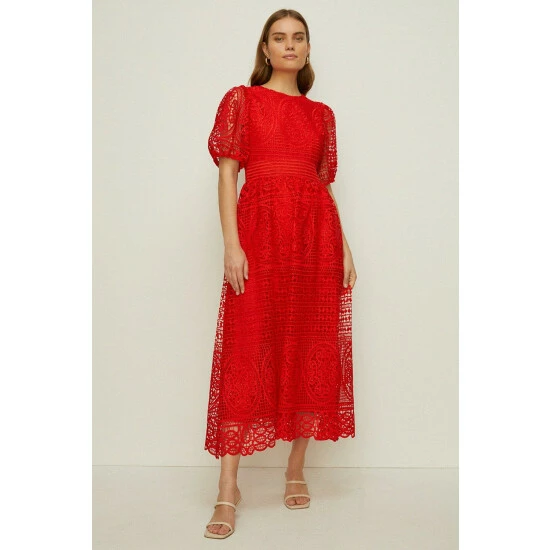 Style: Midi DressDesign: PlainFabric: LaceLength: MidiNeckline: CrewSleeve Length: Short SleeveDiscover our full range of women’s bridesmaid dresses Check out our wedding guest dresses range.