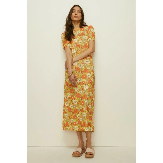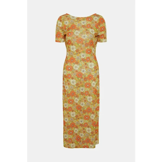 Style: Midi DressDesign: All Over PrintFabric: MeshLength: MidiNeckline: SlashSleeve Length: Short Sleeve