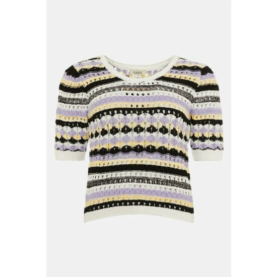Style: JumperDesign: StripesFabric: KnittedLength: RegularNeckline: CrewSleeve Length: Short SleeveDiscover our full range of women’s knitwear