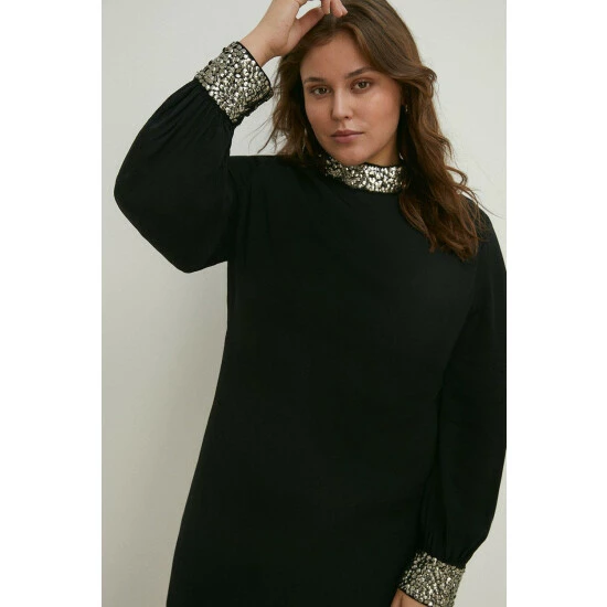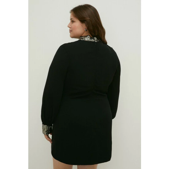 Style: Shift DressDesign: EmbroideredFabric: WovenLength: MiniNeckline: High NeckSleeve Length: Long Sleeve