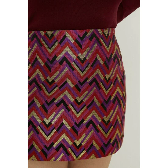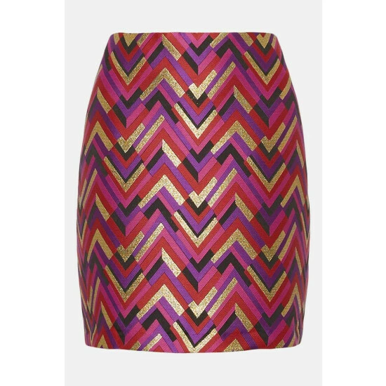 Fabric Comp: Main: 95% Polyester 5% Metallised fibres. Lining: 100% Polyester. Machine Wash 40. Length 44cm. Model Wears Size 10.