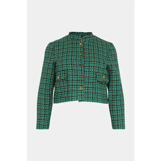 Main: 75% Cotton, 25% Polyester. Lining 100% Polyester. Dry Clean Only. Length 46 cm. Model Wears Size 18.