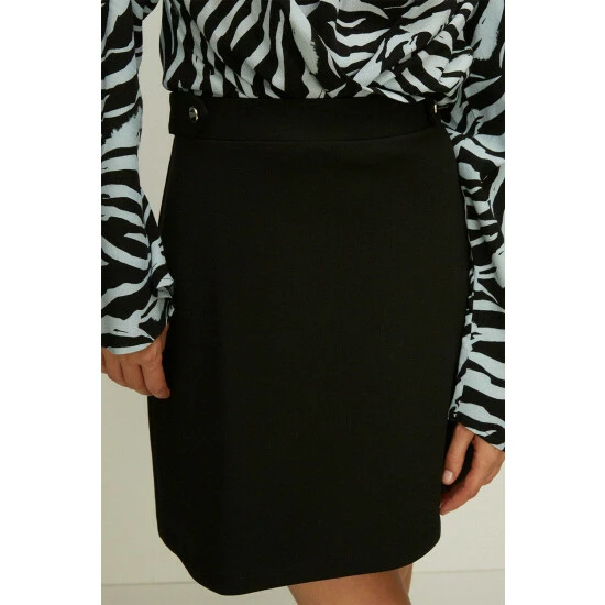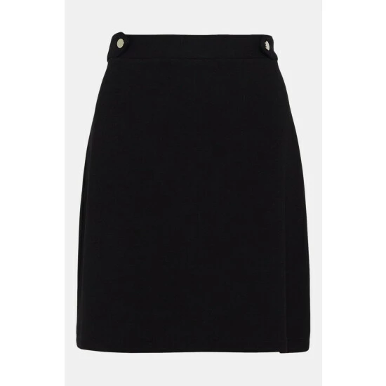 Beautifully crafted in a ponte fabric, this tailored mini skirt is perfect for adding a polished touch to every look. Designed with a flattering high-rise and A-line fit, this mini skirt comes complete with button detailing. Model wears a size 10.