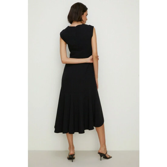 Fabric Comp: Main: 75% Polyester 20% Viscose 5% Elastane. Lining: 100% Polyester. Machine Wash 40. Length at front 115 cm and at back 125cm. Model Wears Size 10.