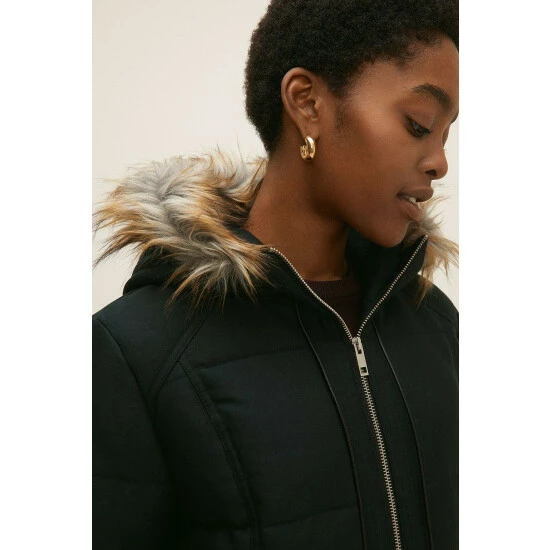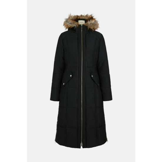 Outer: 50% Polyester 45% Cotton 5% Nylon, Lining: 100% polyester, Wadding:100% Polyester. Dry clean Only. Model Wears Size 8. Coat Length 121cm