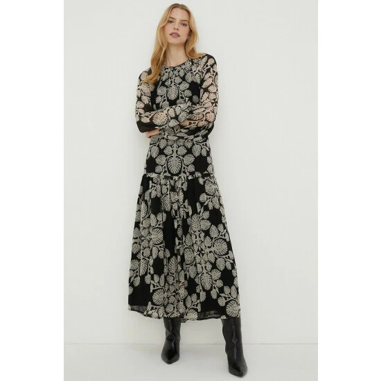 shell 100% viscose lining 100% polyester. Machine Wash. Dress length 133cm. Model Wears Size 10.