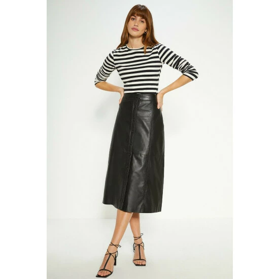 Fabric Comp: Outer: 100% Lamb Leather. Lining: 100% Polyester. Length 80cm. Model Wears Size 10.