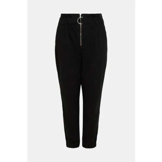 Perfect for seeing you through lazy days and summer nights, these elevated jogger are a stylish wardrobe investment. Showing off a relaxed fit with cuffed hems, a flatter high rise and paperbag waist, they come complete with a matching belt to gently cinch in silhouettes. Model wears a size 10. This garment is part of our Conscious Clothing rangeFind out more about our material goalsThe Boohoo Group are members of Better Cotton. By choosing our cotton products, you’re supporting Boohoo Groups investment in Better Cotton’s mission.This product is sourced via a system of mass balance and therefore may not contain Better Cotton. Learn more at bettercotton.org/massbalance.Conscious Clothing Guidelines