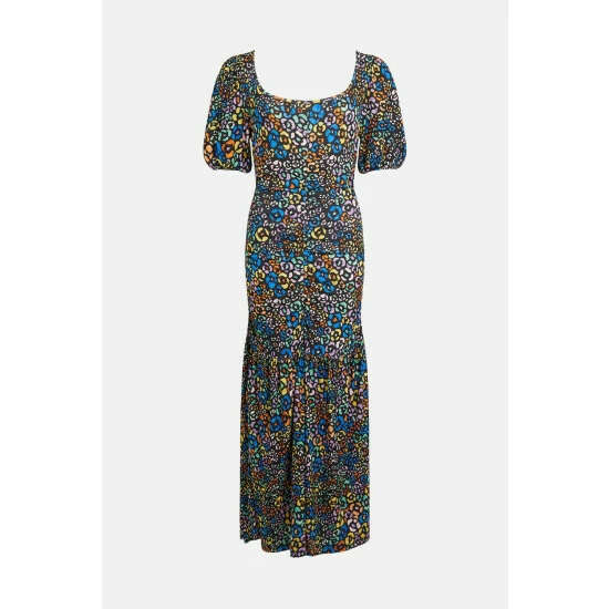 Style: Midi DressDesign: AnimalFabric: Ity JerseyLength: MidiNeckline: CrewSleeve Length: Short Sleeve
