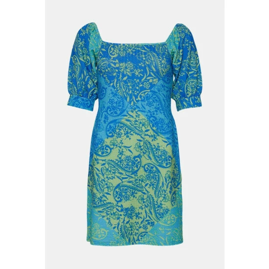 Style: Mini DressDesign: Scarf PrintFabric: TexturedLength: MiniNeckline: CrewSleeve Length: Short Sleeve