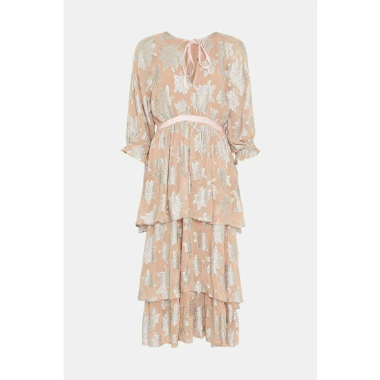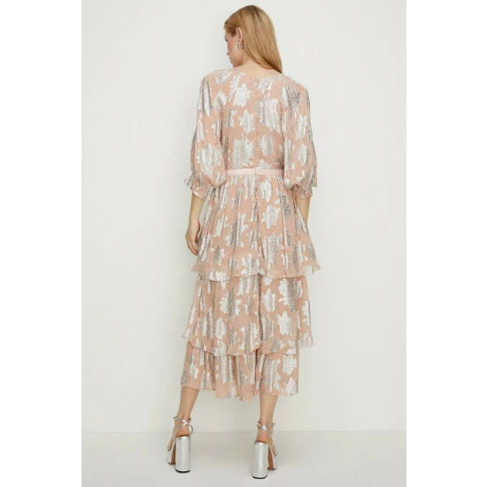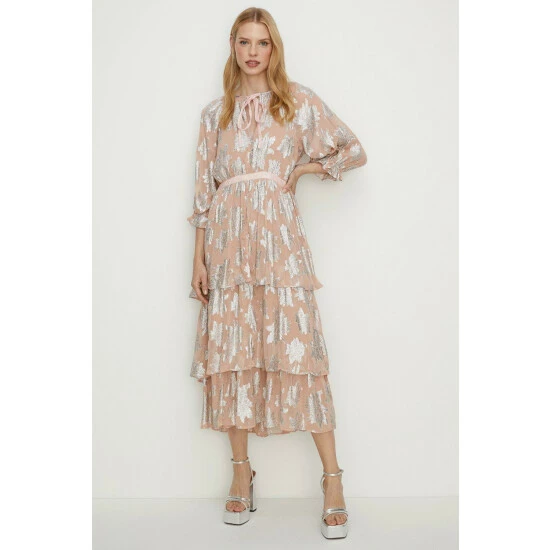 Shell 81% viscose, 19% metallised fibre. Lining 100% polyester. Machine Wash. Dress Length 130cm. Model Wears Size 10.