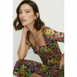 Oasis Petite Floral Keyhole Front Mesh Midi Dress For Female