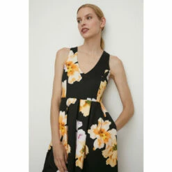 Oasis Petite Fruit Daisy Border Tie Scallop Dress For Female