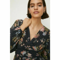 Oasis Petite Floral Metallic Plisse Tiered Mini Dress For Female