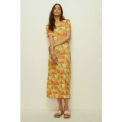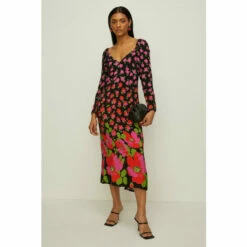 Oasis Petite Neon Floral Printed V Neck Midi Dress For Female