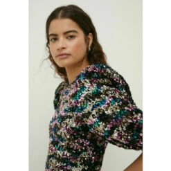 Oasis Petite Premium Mixed Sequin Puff Sleeve Mini For Female