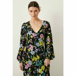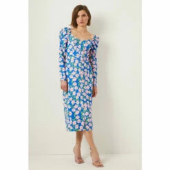 Oasis Petite Printed Floral Puff Sleeve Midi Dress For Female