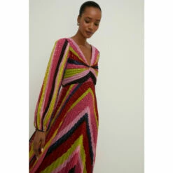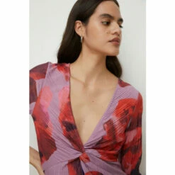 Oasis Petite Shimmer Plisse V Neck Twist Midi Dress For Female
