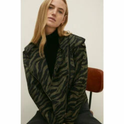 Oasis Rachel Stevens Zip Through Zebra Print Coat For Female